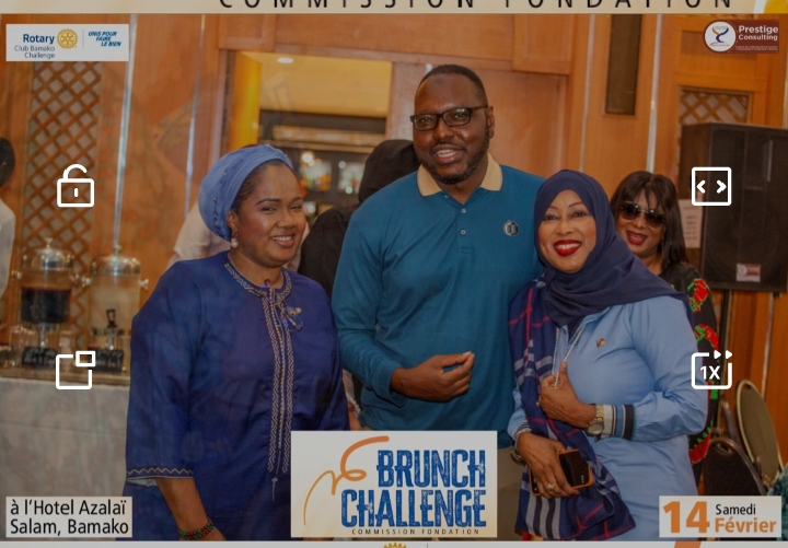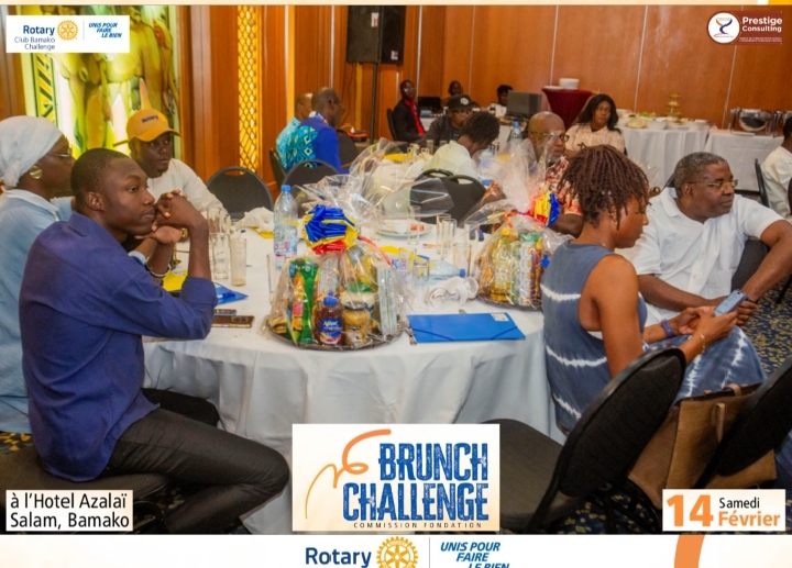 (CROISSANCE AFRIQUE)-Au Mali, le Rotary Club Bamako Challenge a organisé avec soin un événement marquant, un Brunch Challenge, qui s’est tenu dans le cadre de l’Hôtel Salam de Bamako, le samedi 14 février 2026. Cette rencontre a été marquée par la présence des donateurs ainsi que des divers membres du bureau du Rotary Club Bamako Challenge, accompagnés du président Dr Youssouf Diawara en exercice, et de la présidente elue, Me Nadia BIOUELE, une personnalité dynamique et rayonnante de cette organisation caritative.