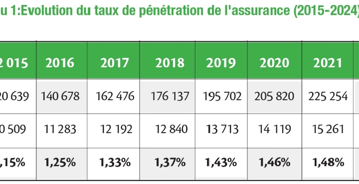 Malgré cette amélioration, le taux moyen de pénétration s’établit à seulement 2,96 %, et ce chiffre reste nettement inférieur à la moyenne mondiale, qui avoisine environ 8 %, ainsi qu’à la moyenne africaine estimée à environ 3 %. Cela souligne le chemin qu’il reste à parcourir pour atteindre des niveaux plus conformes aux standards globaux et régionaux.