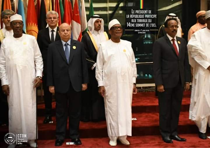 Le Président de la République, Chef de l’Etat Son Excellence Monsieur Ibrahim Boubacar Keita, a assisté ce 1er juin 2019 à la Mecque au 14ème Sommet ordinaire de l’Organisation de la Coopération Islamique (OCI) sous la haute présidence du serviteur des deux Saintes Mosquées, le Roi Salmane Ben Abdelaziz Al Saoud du Royaume d’Arabie Saoudite . Le thème de ce sommet ordinaire est « main dans la main vers l’avenir ». En plus de ces nombreux dirigeants des pays musulmans du monde entier membres de l’OCI à la Mecque , étaient également présents dans la salle Al Safa Palace , des dirigeants des 5 pays membres du G5-Sahel.