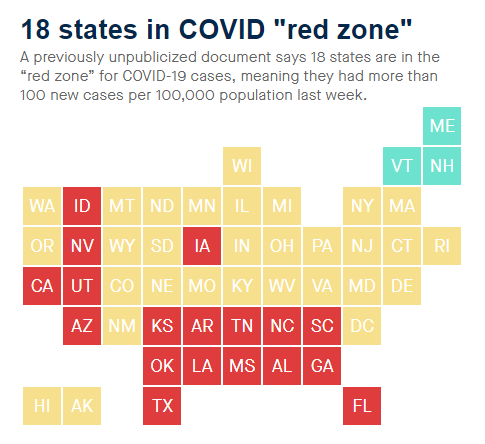 Un document non publié auparavant indique que 18 États sont dans la « zone rouge » pour les cas de COVID-19.